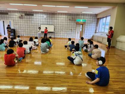 4校交流で、「子供会」をします。一人一人上手に自己紹介をしました。