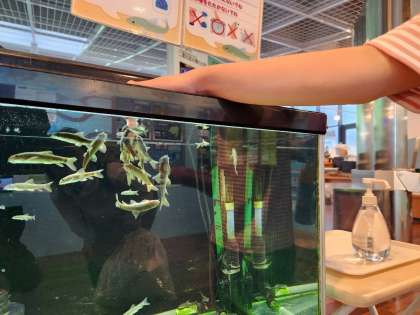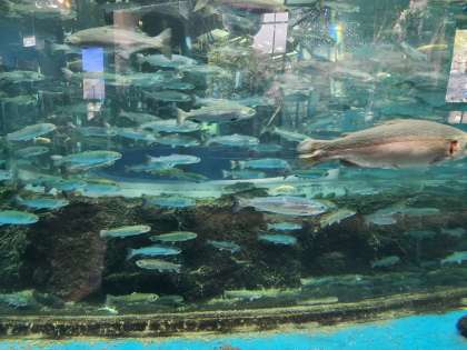 水族館の見学をしました。淡水魚を中心に見ました。蛙やカニもいました。