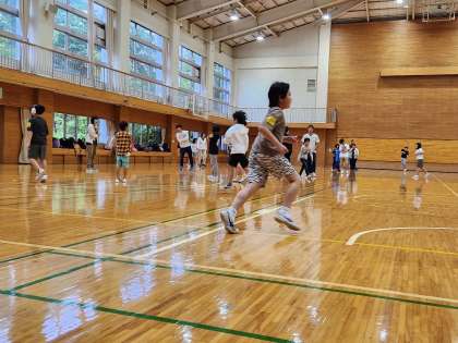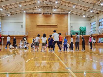 水族館見学から戻りました。4校で交流遊びをします。「電子レンジ」鬼ごっこです。