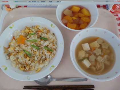 本日の給食は、【七夕メニュー】ちらしずし・七夕汁・七夕フルーツポンチ・牛乳です。