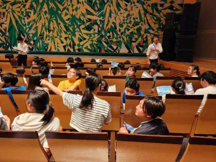 目黒パーシモンホールに到着しました。世田谷区内の10校と、一緒に鑑賞します。演目は、「ガンバの大冒険」です。