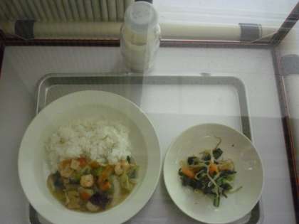 今日の献立は、中華丼、ナムル、牛乳です。この頃、気温が高くなってきました。よく食べて、暑さに負けないからだを作ってほしいです。