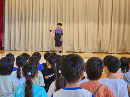 6年生の代表が、校歌の指揮をとりました。指揮に合わせて、全校児童の元気な歌声が体育館に響きました。