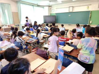 クラスでは、席替えや夏休みの提出物の確認を行っていました。