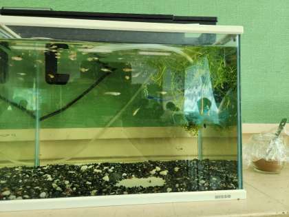 育てているメダカも校内の避暑地から教室にもどってきました。