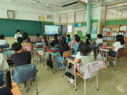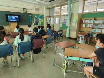 各教室の扉は、全て施錠できるようになっています。子どもたちは、教室内に教員と立てこもる訓練を行いました。