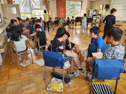 「スペインのカスタネット」の曲をカスタネットで演奏します。どのように演奏したいかをグループで話し合いました。