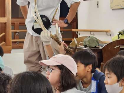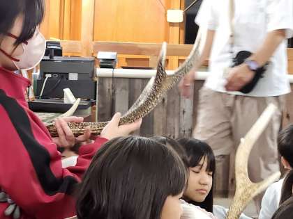 宿舎に戻り映像を見たり、鹿の角を見たりしました。