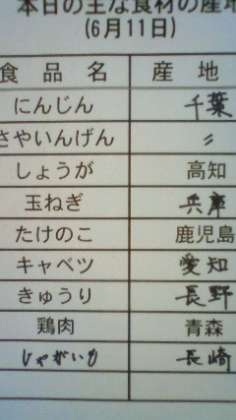 今日は、ごはん 牛乳 ひじきのふりかけ 揚げ煮 ひとしお野菜 です。