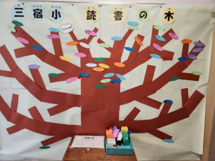 10月は、読書月間です。児童昇降口に児童の呼んだ本の紹介カードを貼っています。