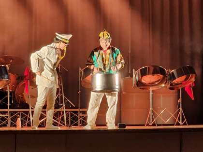 スチールパンができるまでのことを音楽と演技で教えていただきました。