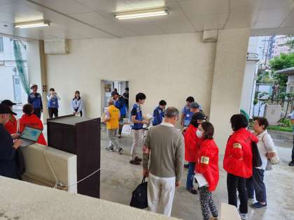 本日、令和6年度三宿小学校避難所運営訓練を雨のなかですが、各自治体、まちづくりセンターの職員の皆様が、中心となり行われました。