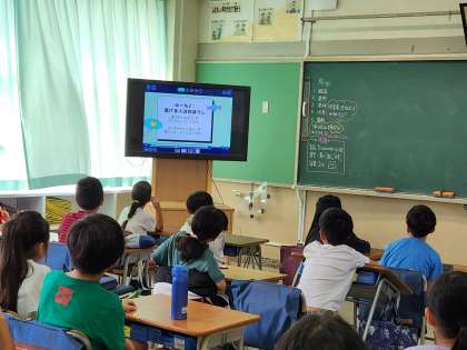 今朝は、ロイロノートを使い運動委員会の子どもたちが、「鬼ごっこ」のルールを全校の子どもたちに説明をしてくれました。