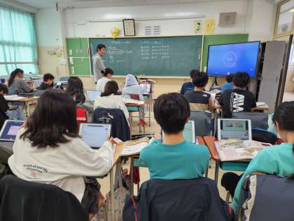 歴史学習中です。理科と社会科で教科を担任一人が、2クラスとも社会科、もう一人が2クラスとも理科を指導しています。