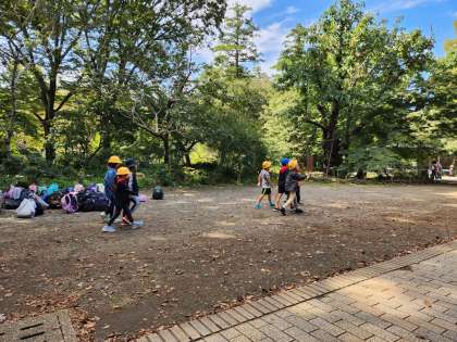 動物園見学を、たてわりグループでしています。2年生の子どもたちが、1年生のこどもたちのお世話しています。