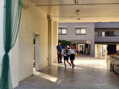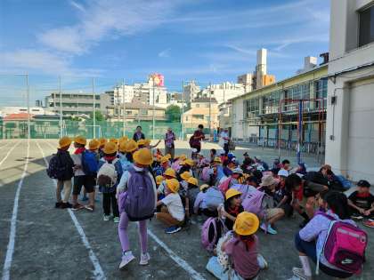 学校に到着しました。大きな「ただいま」の声に上級生が「お帰り」の声が、あちこちから聞こえてきました。