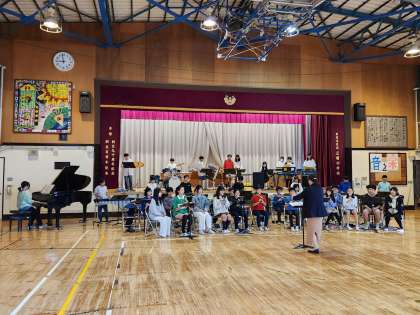 音楽会に向けて、体育館練習を行いました。音楽会実行委員会を作り、子どもたちが主体的に取り組んでいます。