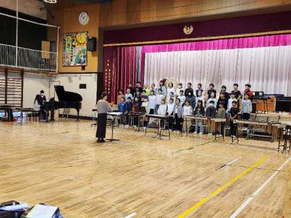 音楽会に向けて、体育館練習を行っています。季節の歌のメドレーでした。