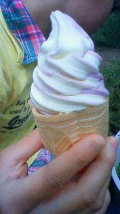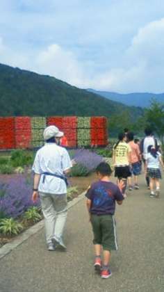 みんなで大石公園までお散歩です。 アイスクリームは、とってもおいしいです。夕飯のあとはキャンプファイヤーと花火をみます。