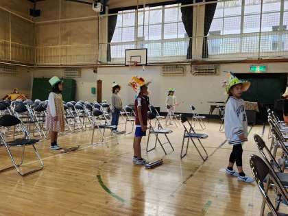 音楽会に向けて、かわいらしいカラフルな帽子を作りました。