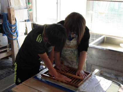 初めて紙漉きを体験する児童もいましたが、伝統工芸室の方々のサポートできれいな和紙を作ることができました。