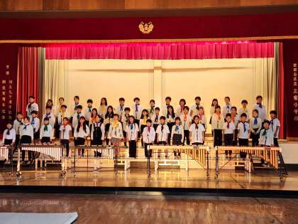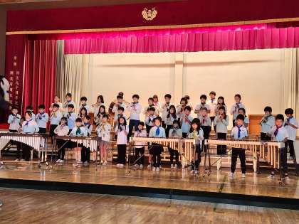 音楽会の練習です。図工の時間にリコーダーを首から下げる紐を作りました。カラフルなバンダナとリコーダーの紐が光っています。