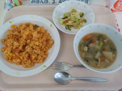 本日の給食は、チキンライス・ツナサラダ・ポトフ・牛乳です。