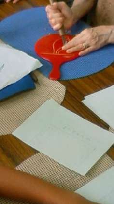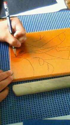 日光に着きました。ここは五十嵐漆器店です。日光彫りの体験学習です。彫刻刀の持ち方を教えていただきましたが、いつも使っている彫刻刀とは違い緊張します。まずは、下書きから始めます。