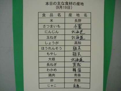 今日の献立は、さつまいもごはん、牛乳、松風焼き、ほうれんそうの乾物あえ、みそ汁です。