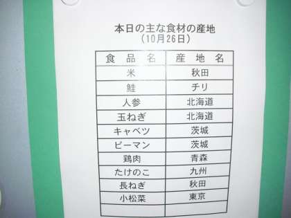 今日の献立は、わかめごはん、牛乳、さけのチャンチャン焼き、吉野汁です。