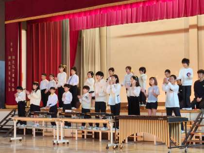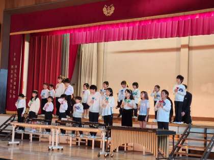 ハンドベルのきれいな音色を聞かせてくれました。うたには、手話を入れて発表しました。
