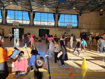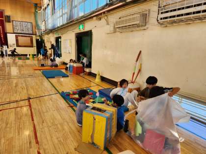 1年生か、保育園児をサポートして、2年生が遊びを企画し、楽しませています。