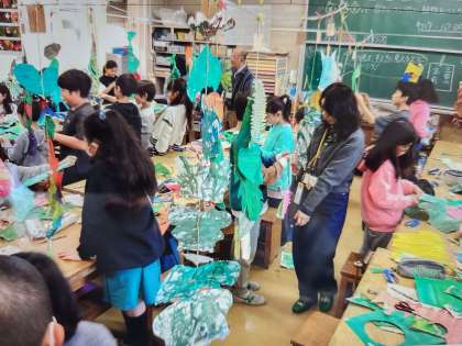 世田谷区内1000人の子どもたちが製作するこの作品は、「緑の惑星」展の最後の会場に飾られます。三宿小学校の4年1組とわかば学級の子どもたちの作品が飾られます。