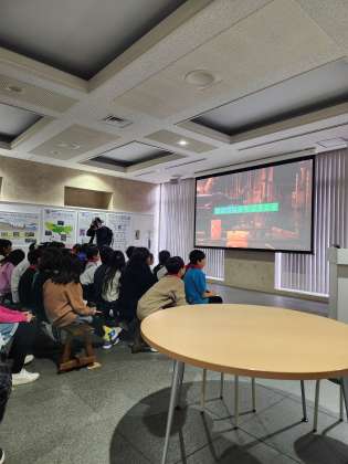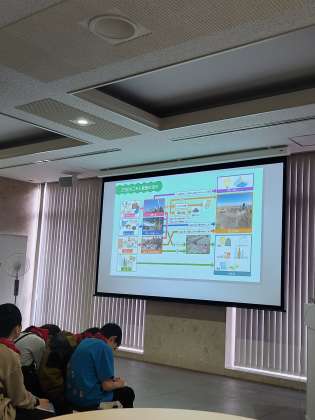 ごみの処理と環境との関わりをについて、説明を聞いています。