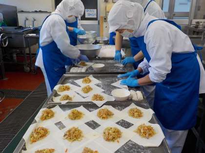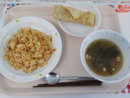 本日の給食は、キムチチャーハン・春巻き・わかめスープ・牛乳です。