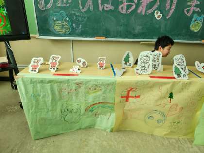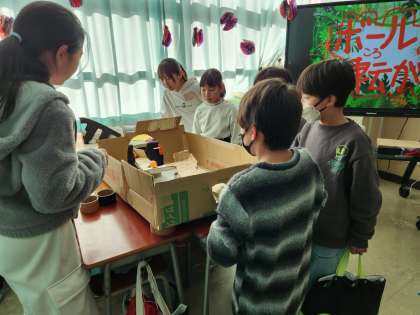 楽しんでいます。クラス内で回る人、楽しませる人を前半、後半で交代で行います。