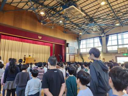3学期の始業式を行いました。転入児童を向かえて、新たな気持ちで出発しました。