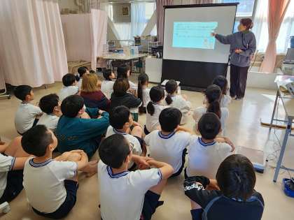 今回は、タブレット等の機器を使う際に起こる健康被害と防ぎ方を指導しました。