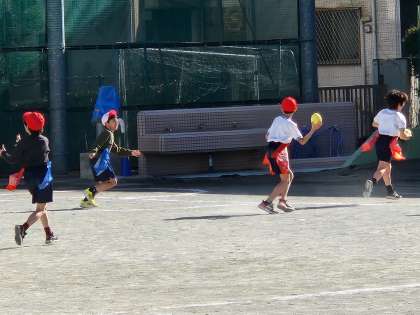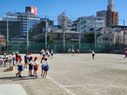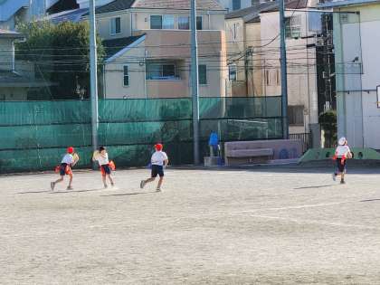 風もないので、過ごしやすい気温です。子どもたちも担任も半袖で元気に体育を行っています。