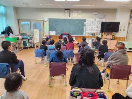 本日は、低学年、わかは学級でPTA主催の読み聞かせをしていただきました。