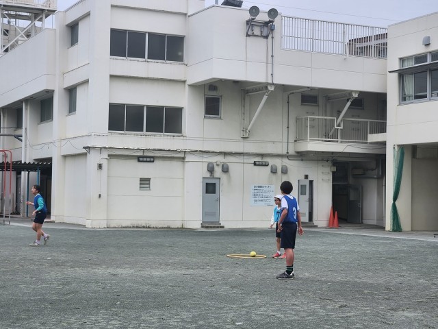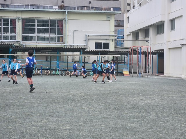 本日は、気温が低く肌寒いなか、6年生が元気に走り回っています。