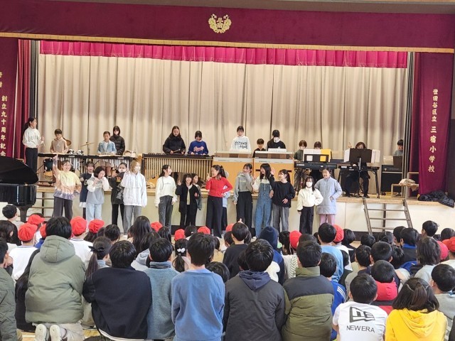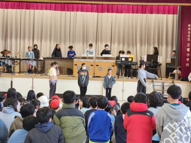 器楽クラブとダンスクラブが活動の成果を発表しました。多くの児童が休み時間でしたが、鑑賞することができました。
