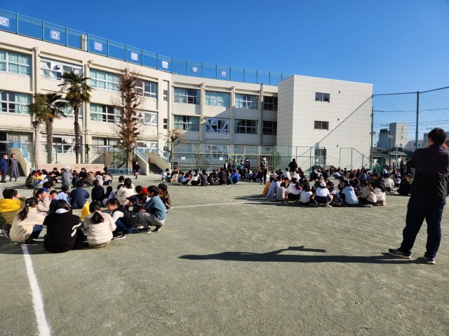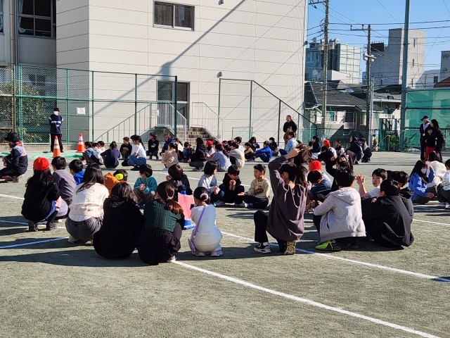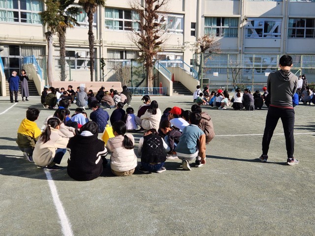 6年生かくれんぼゲームをしました。隠れている自分の班の6年生を探すゲームです。