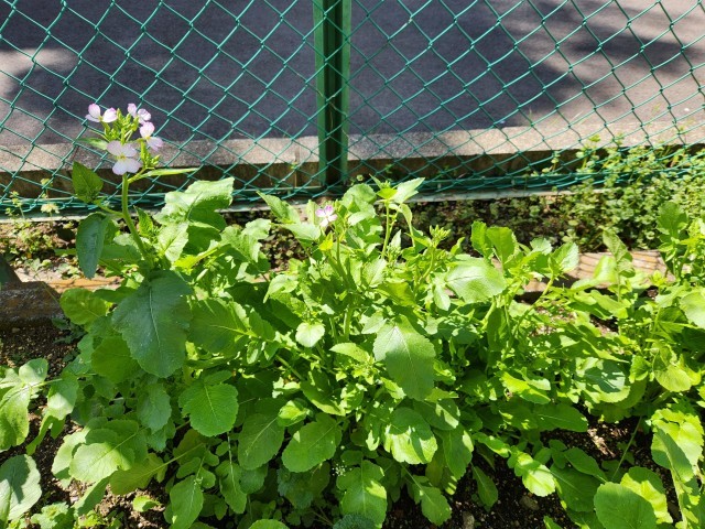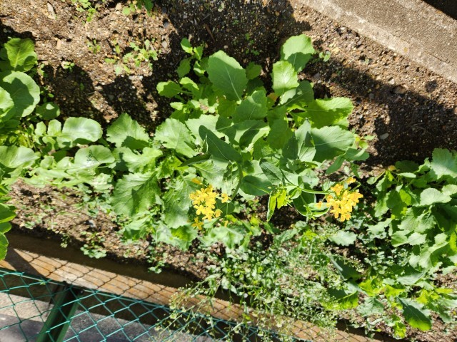 2年生が、1年生のときに植えた大根とかぶの花が咲きました。
