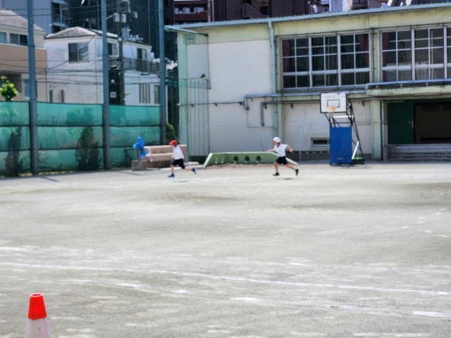 天気もよく、短距離走の学習をしました。ゴール目指して走りました。
