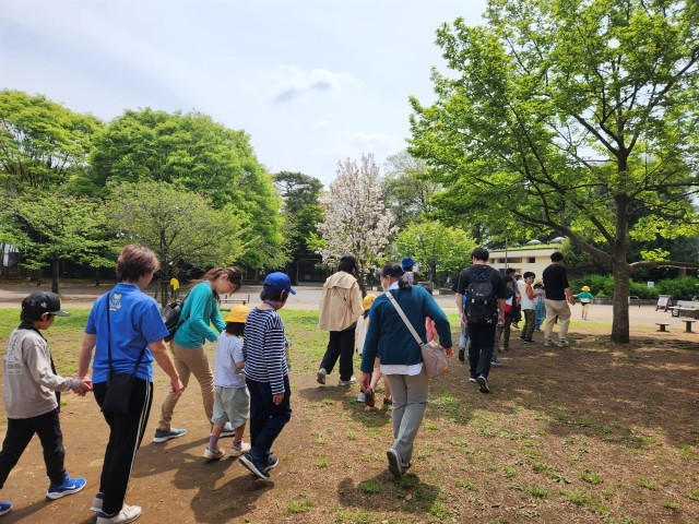 天気もよく緑の多い公園で楽しく遊び、歩行練習もきちんとできました。