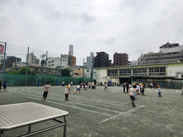曇りで、湿度は高いですが、子どもたちは元気に遊んでいます。