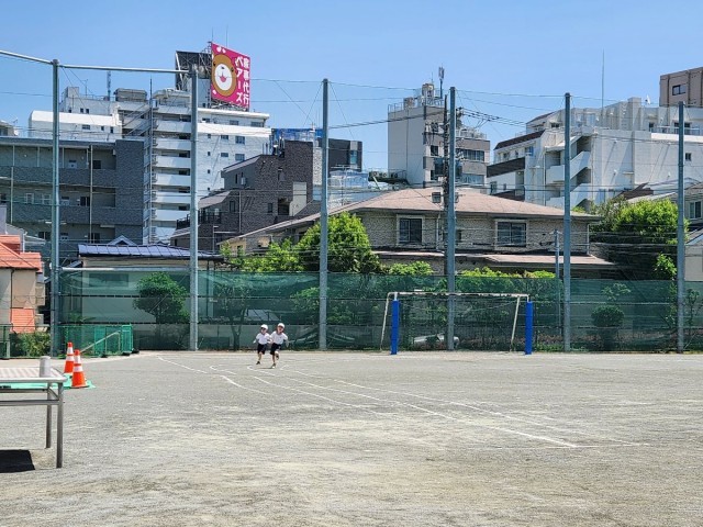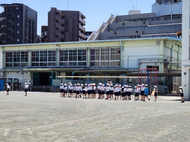 2年生が走るのをお手本としますが、1年生は大きな声で応援していました。