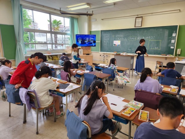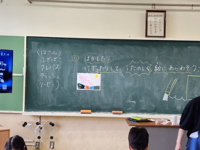 図工で、クレパスを使い、ぼかし、スクラッチなどの表現方法を学びました。