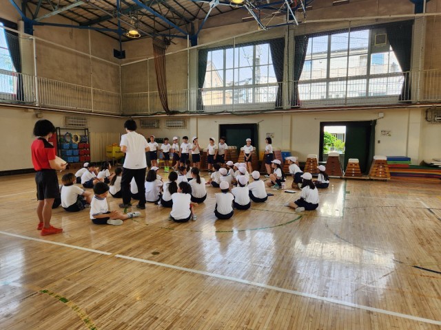 団体競技のルール説明、先頭を引っ張る人決めをしました。今日は、気温が高く、水分と休養をとりながら練習をしました。